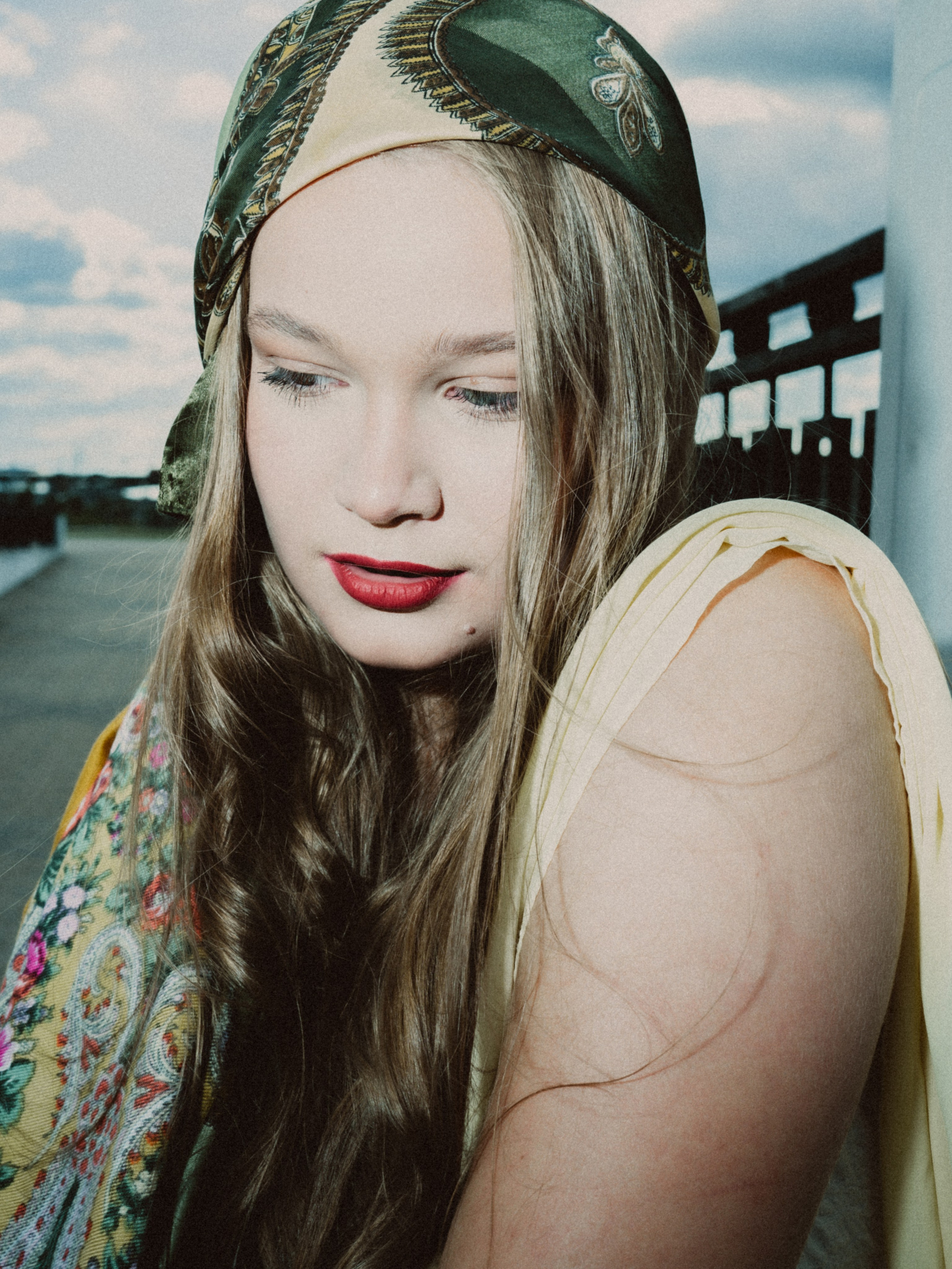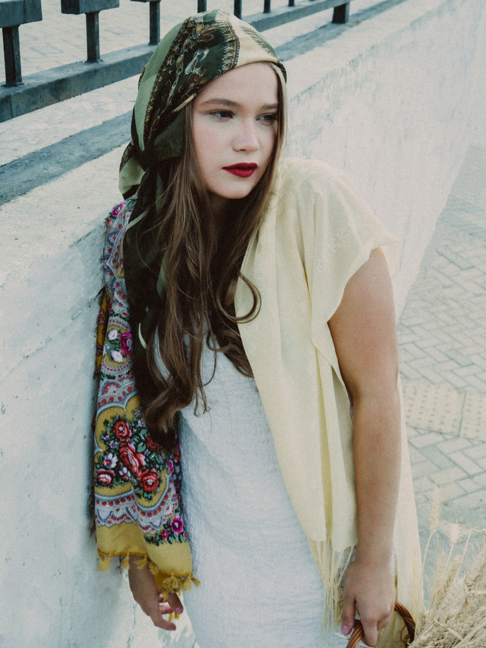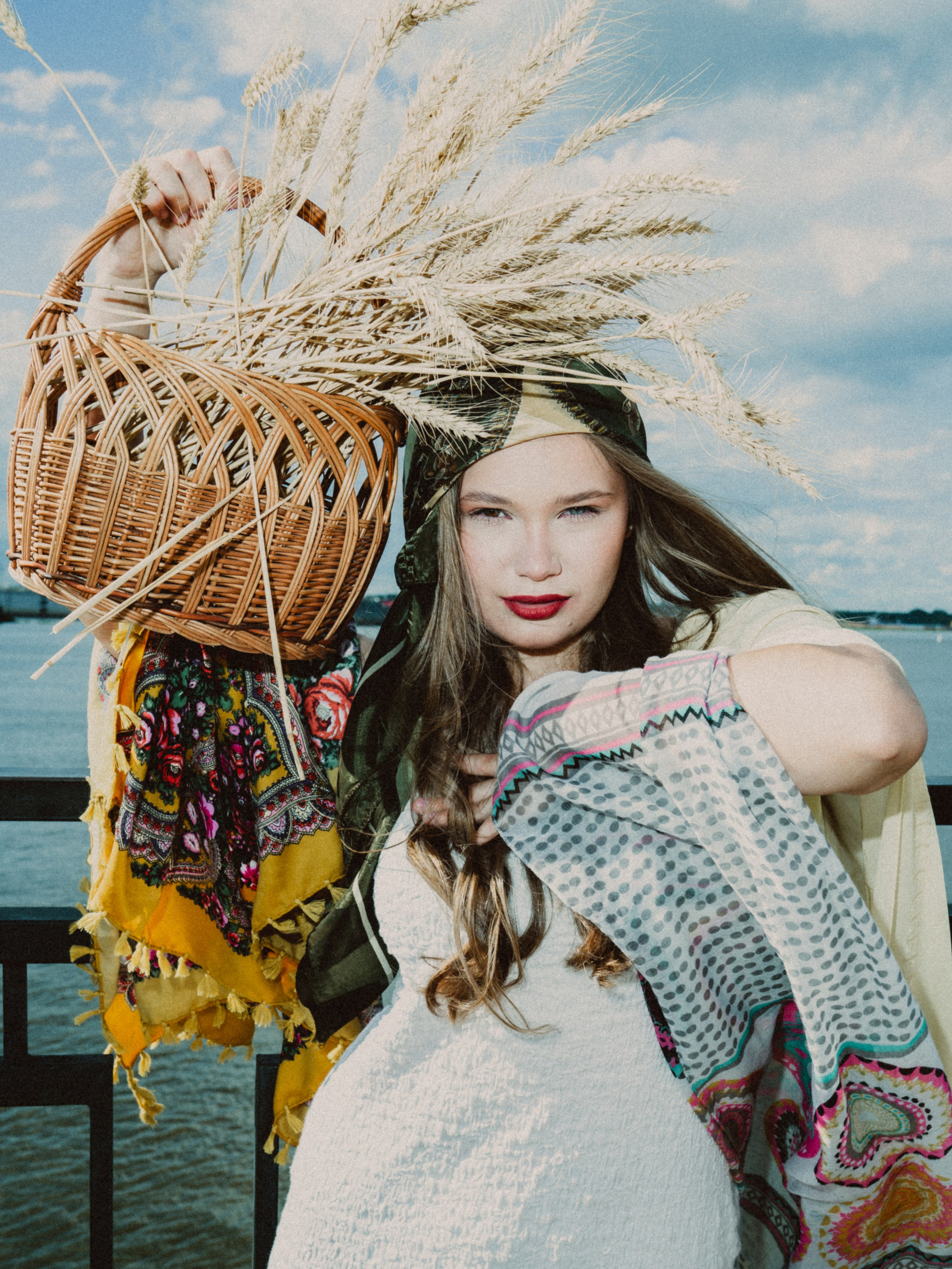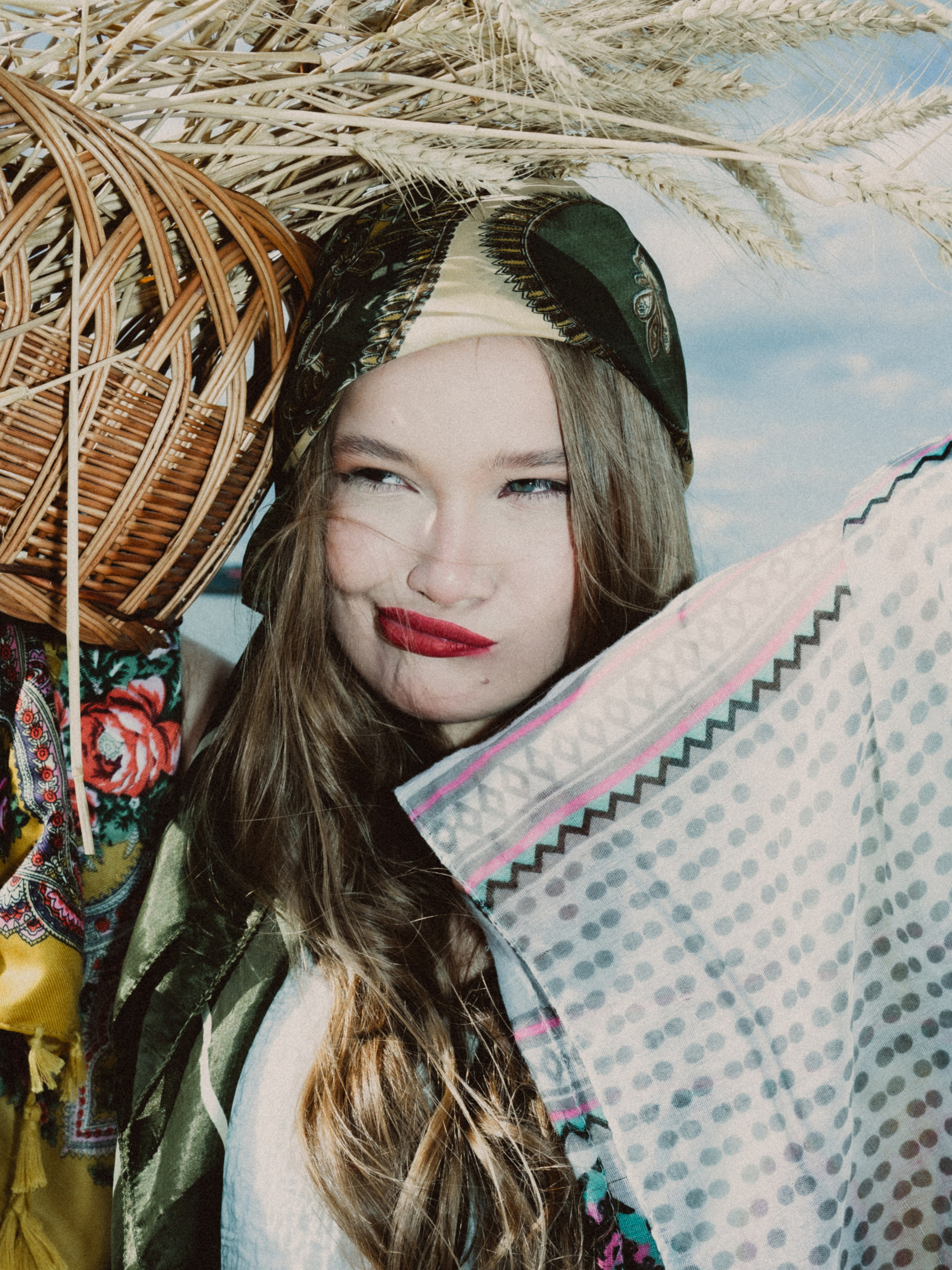 Очаровательная Александра в своеобразном амплуа, совмещающий в себе современный street, а так же русский фольклор