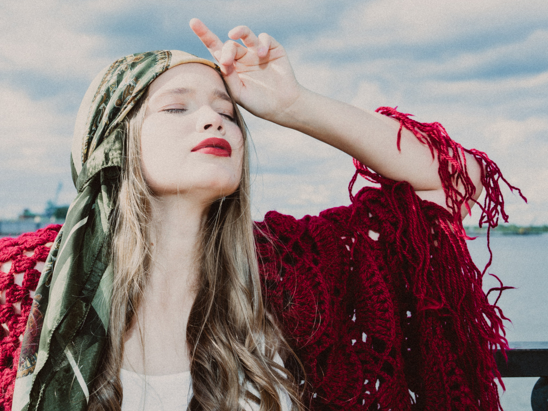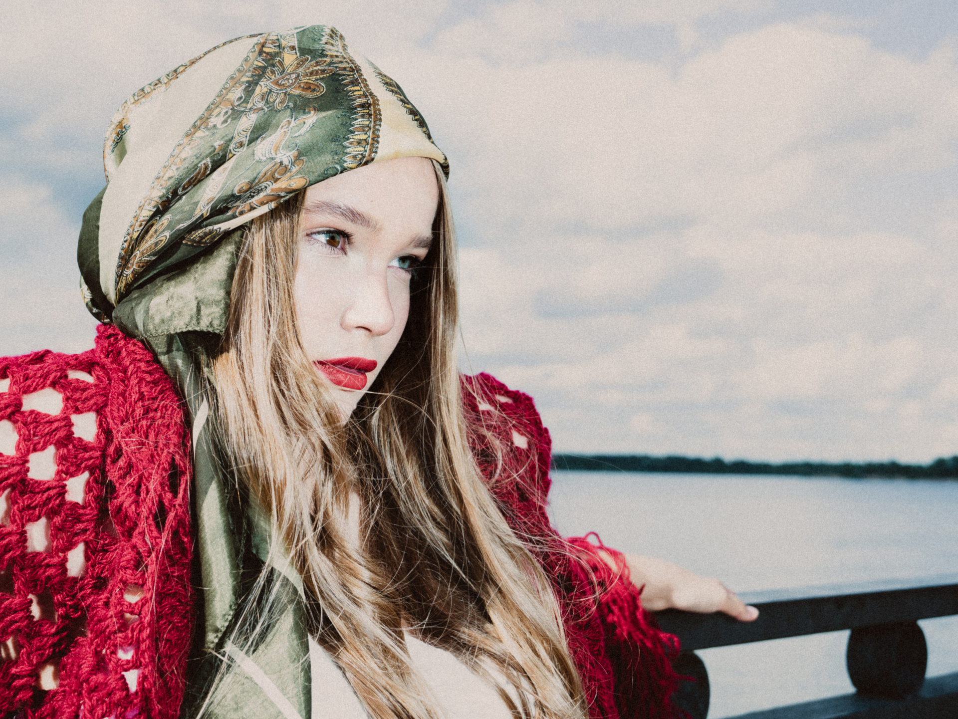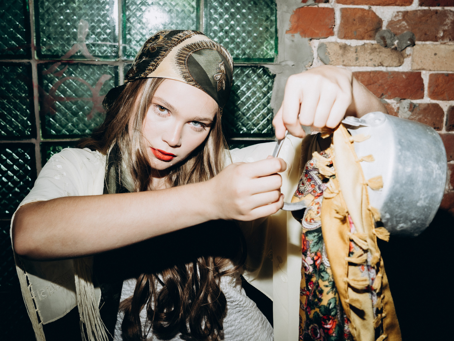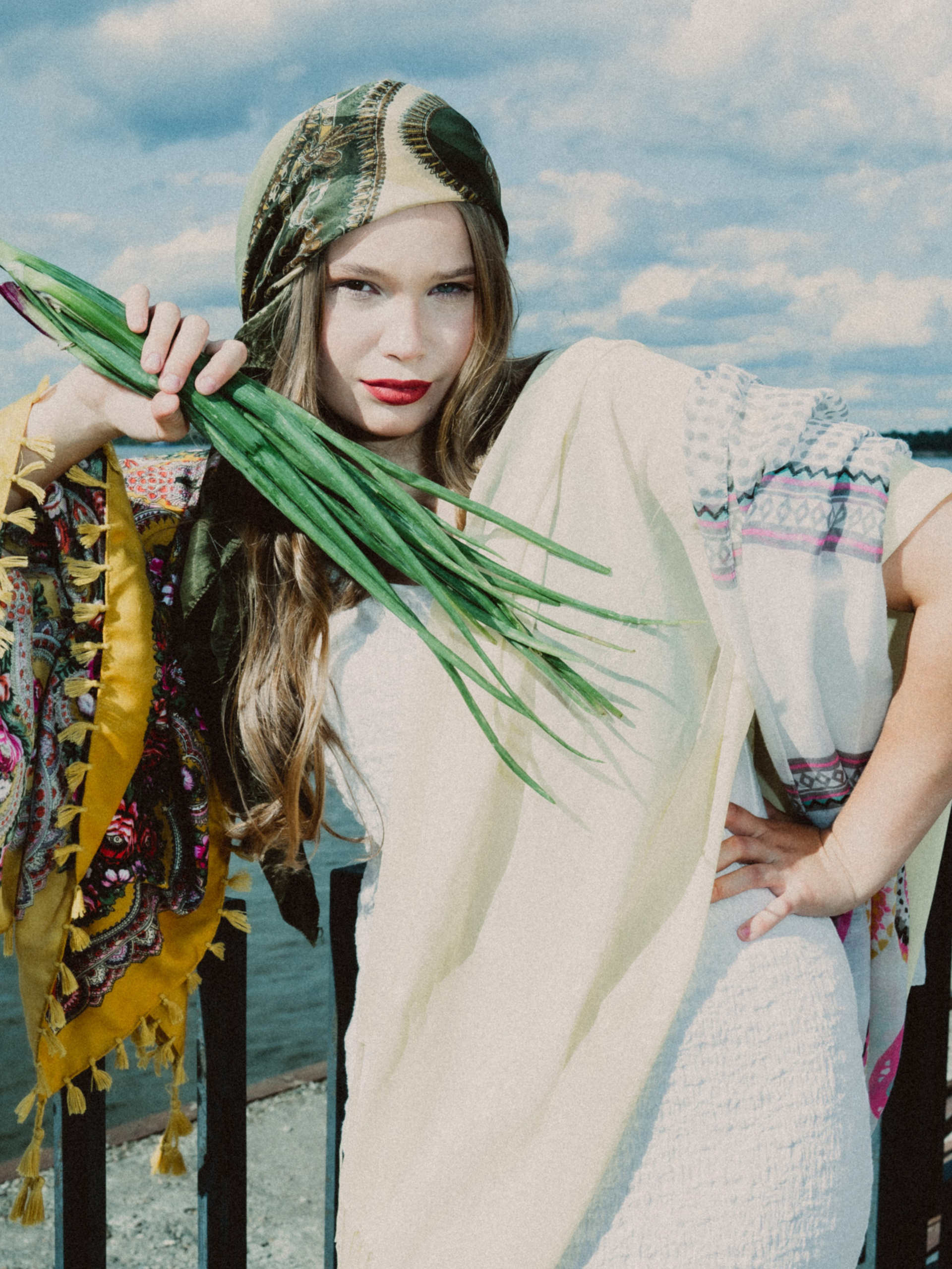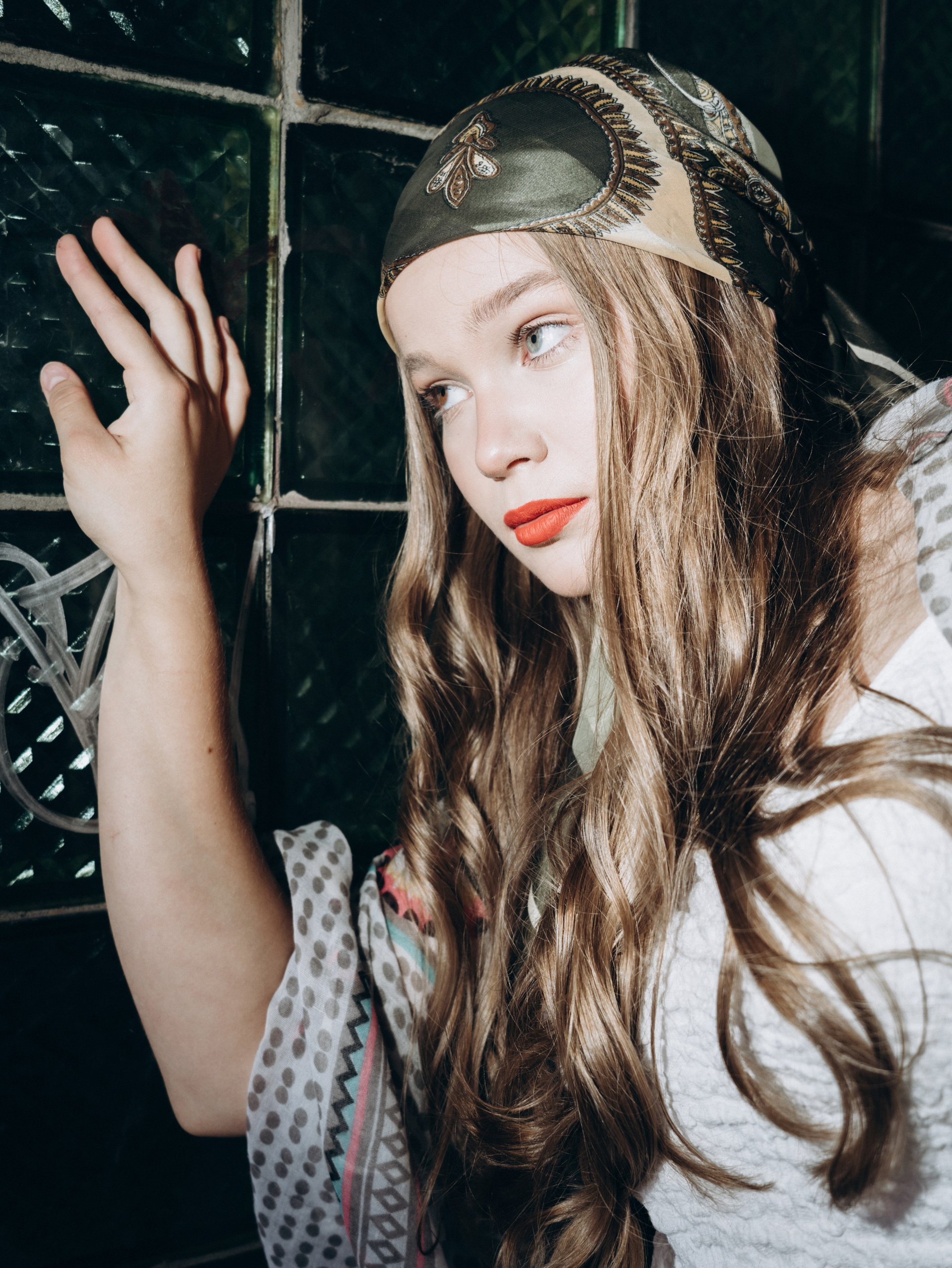 Очаровательная Александра в своеобразном амплуа, совмещающий в себе современный street, а так же русский фольклор
