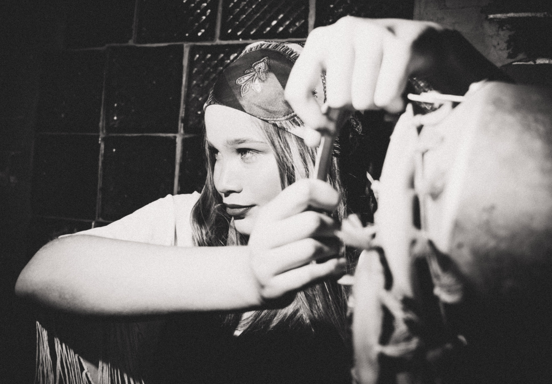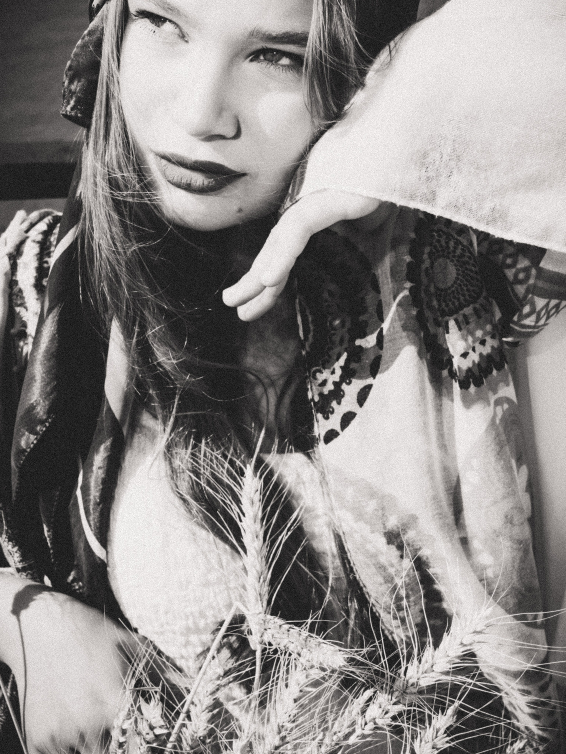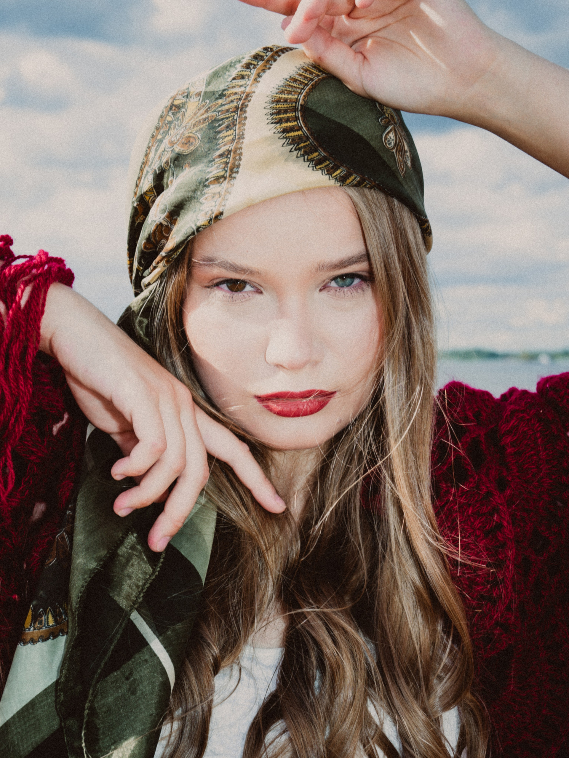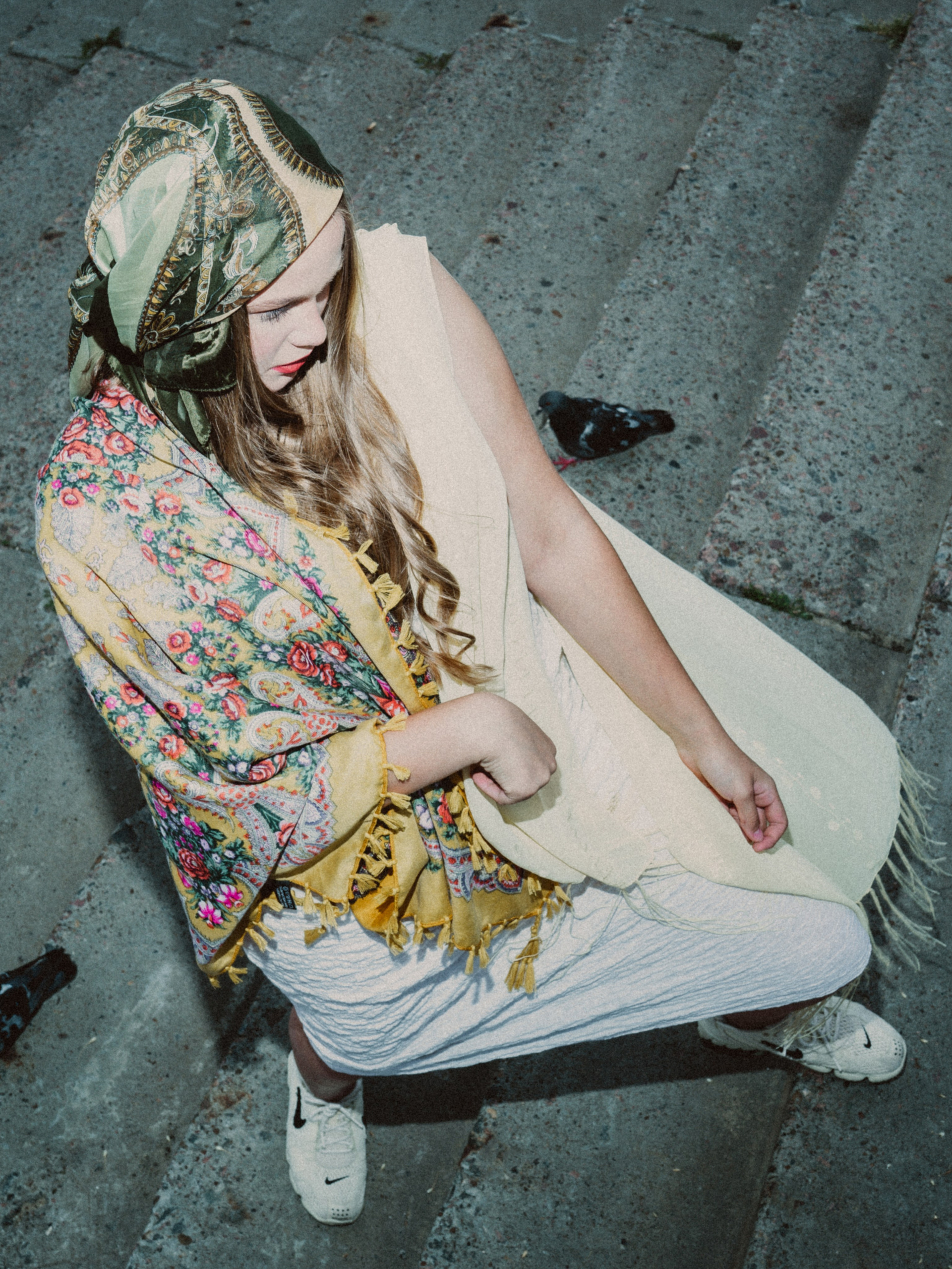 Очаровательная Александра в своеобразном амплуа, совмещающий в себе современный street, а так же русский фольклор