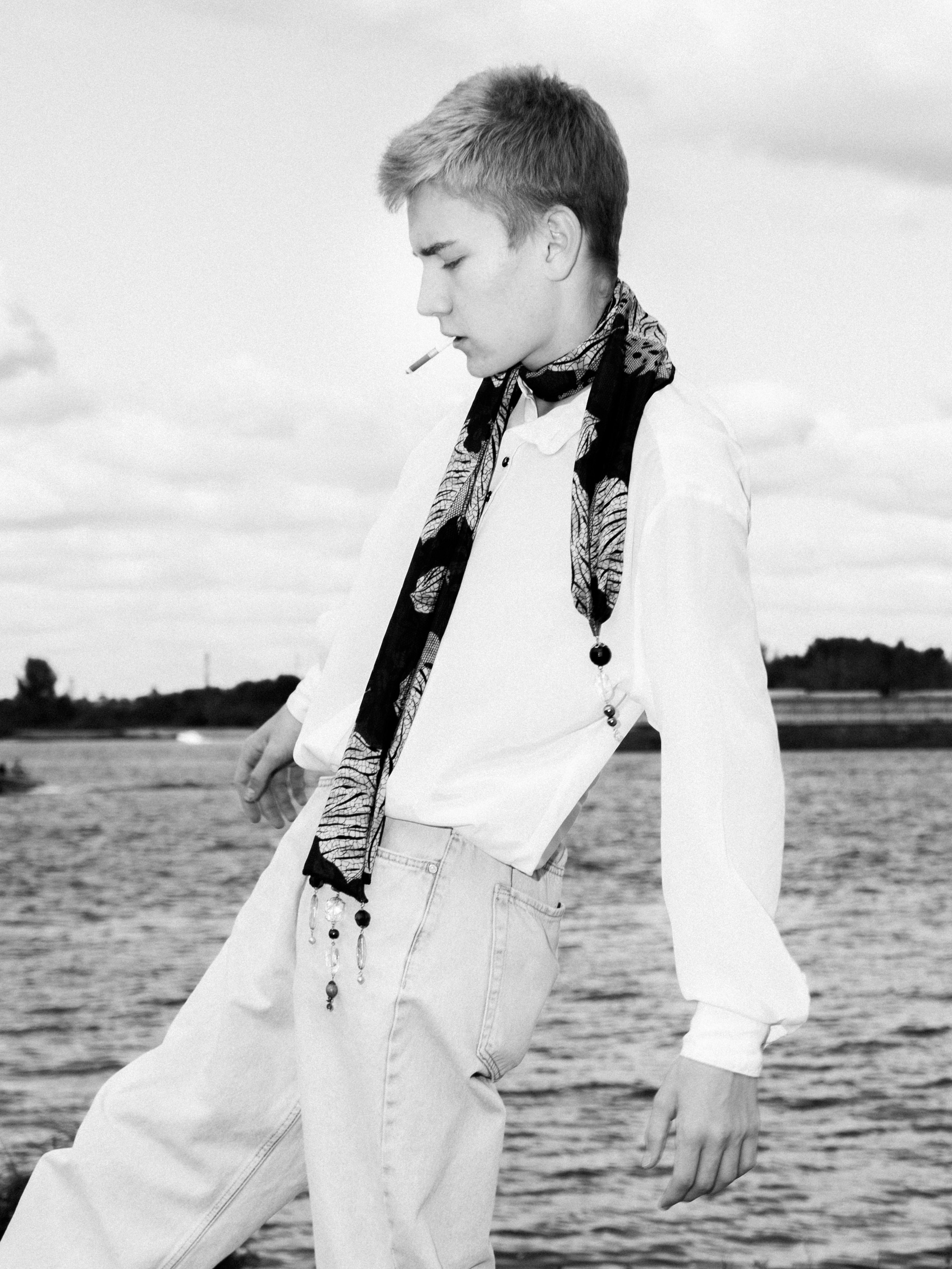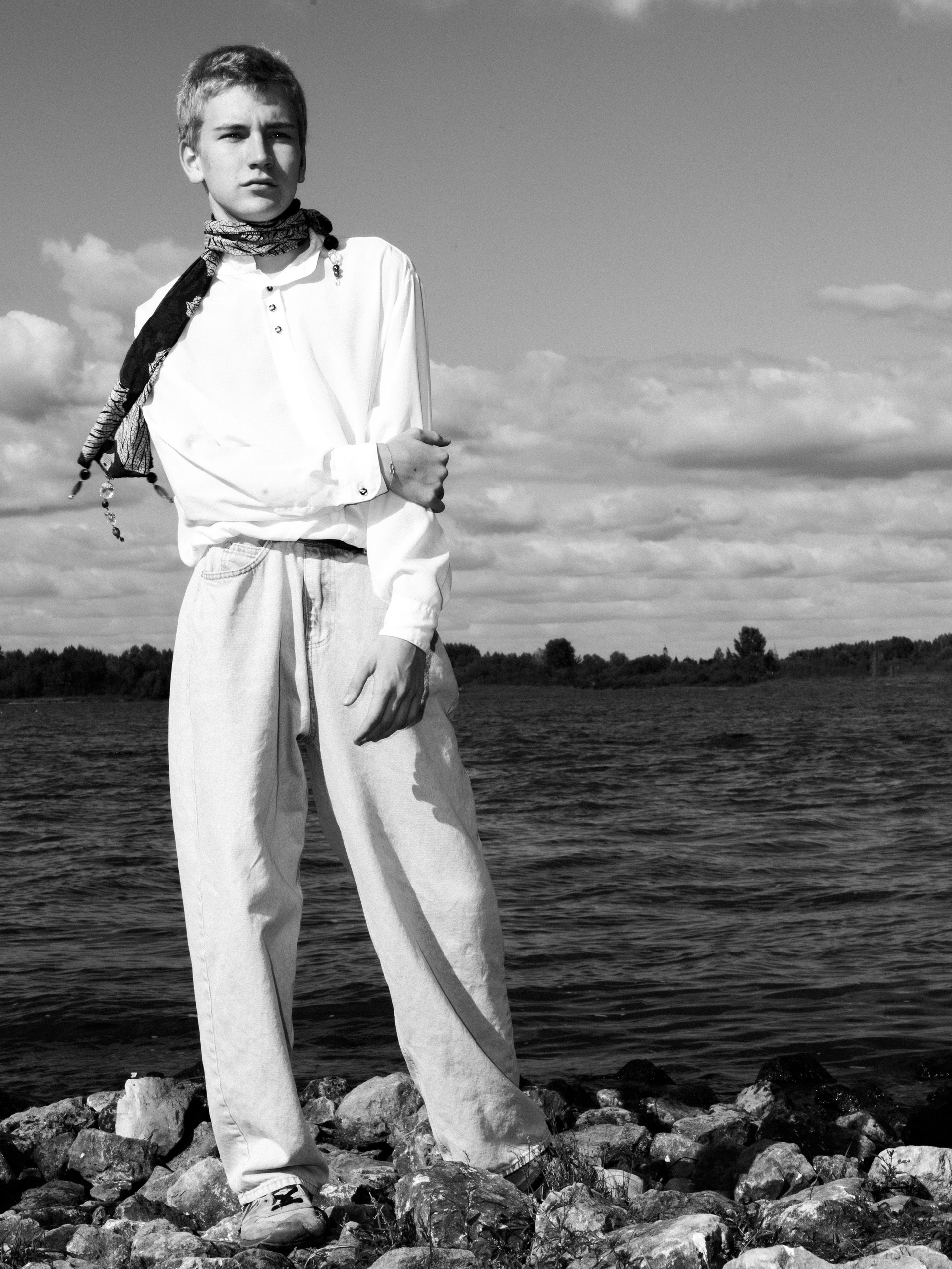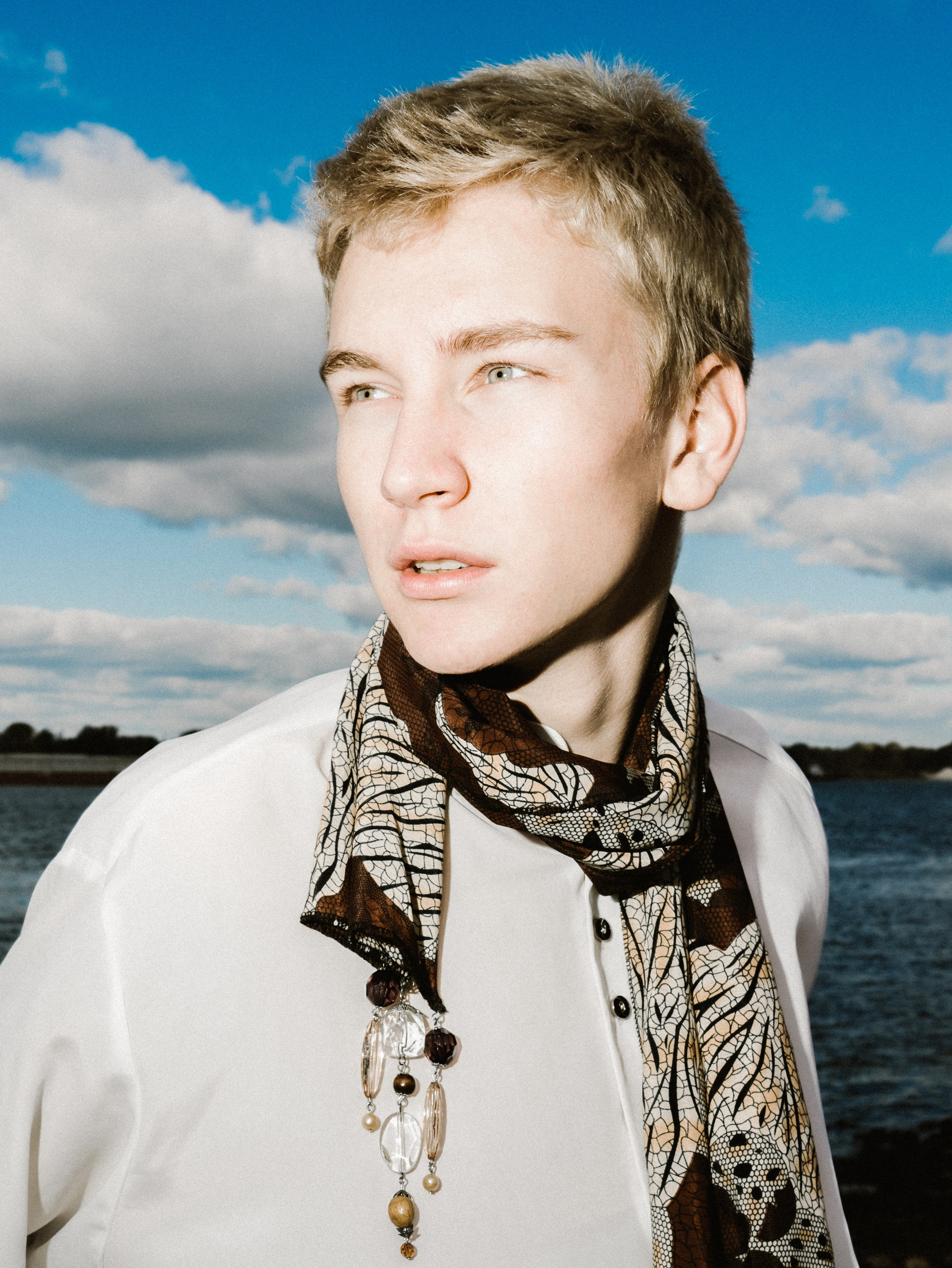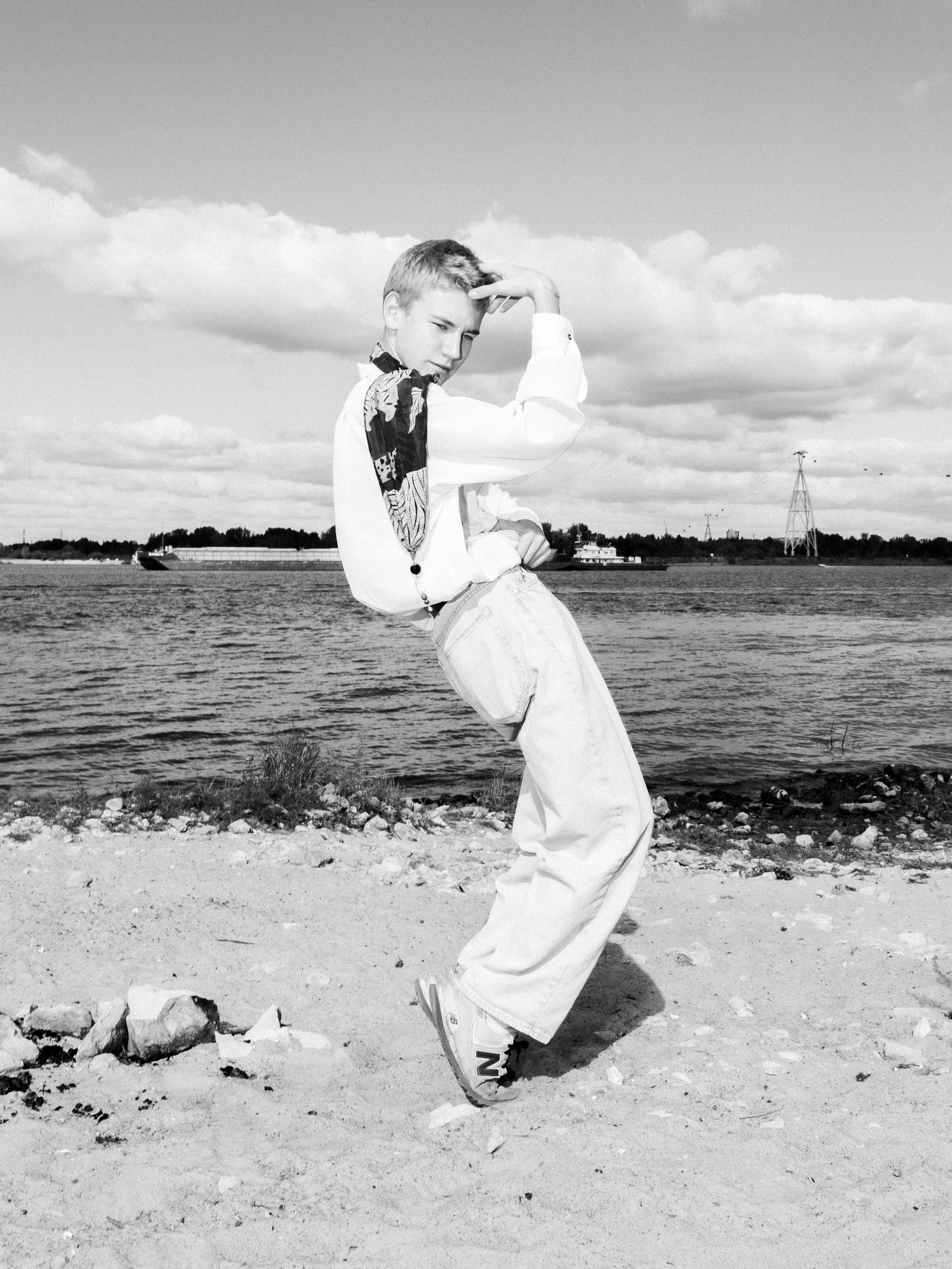 Харизматичный Михаил в офисном образе на берегу Волги