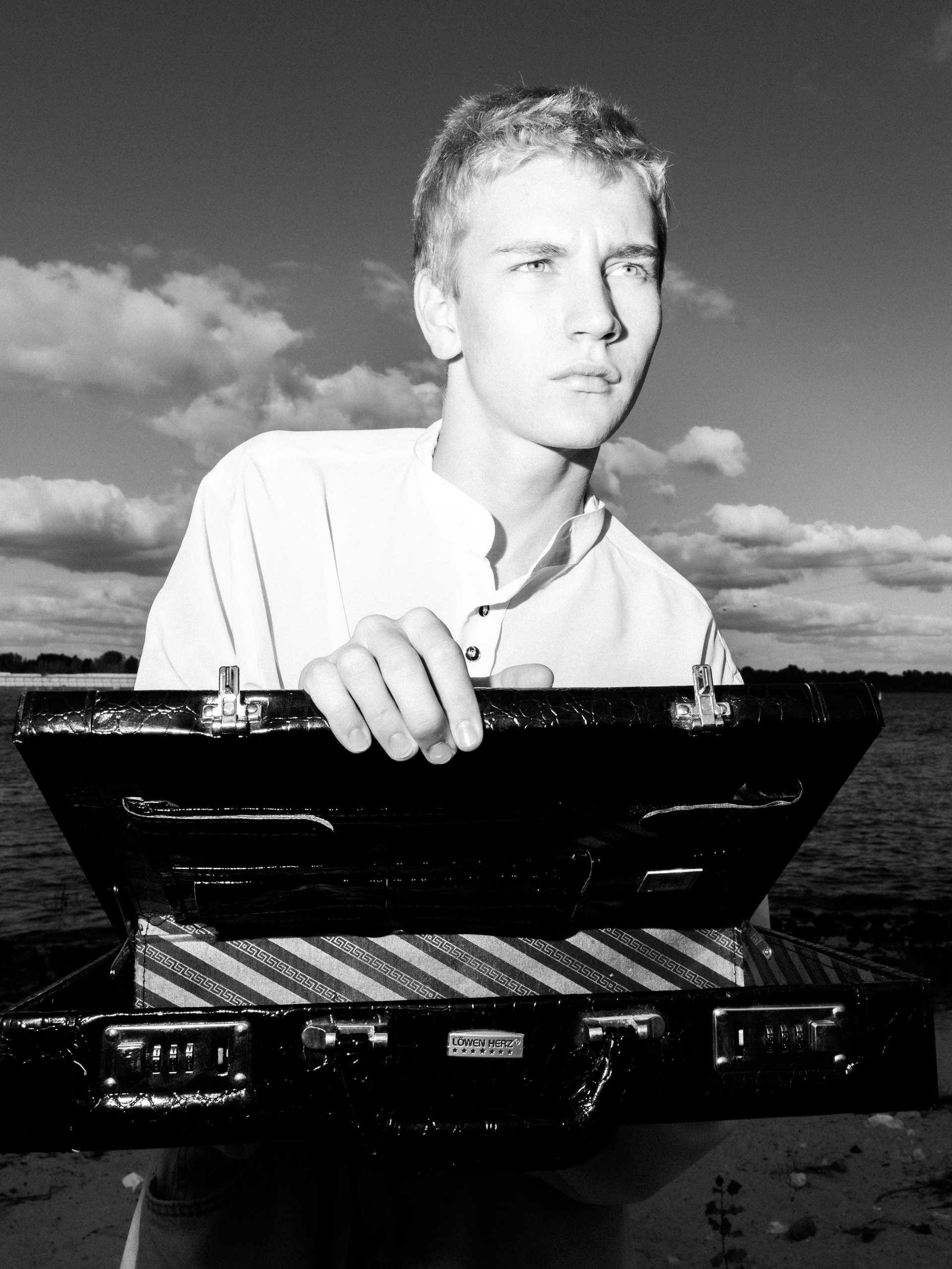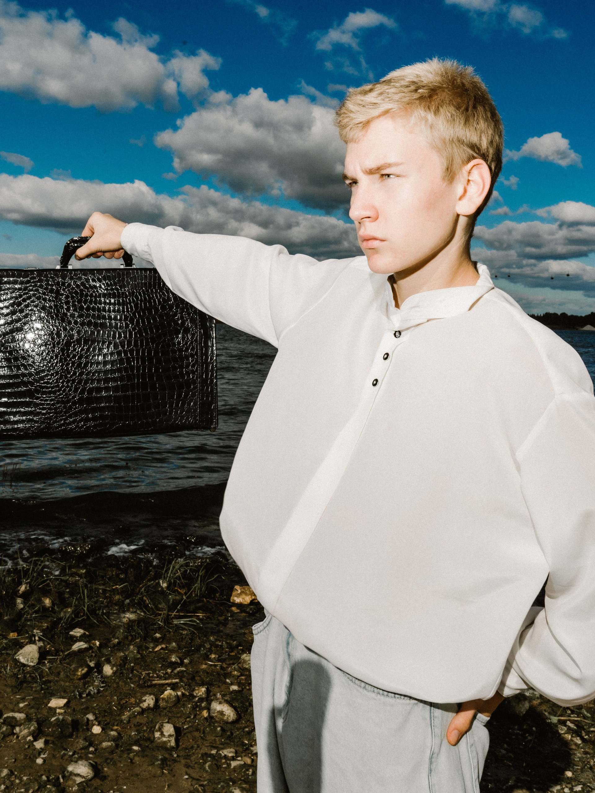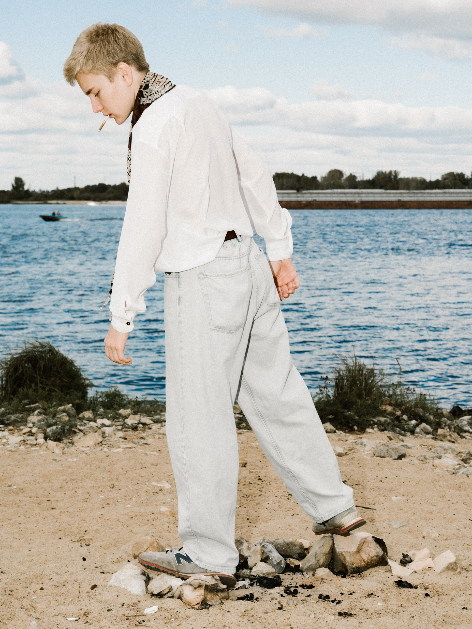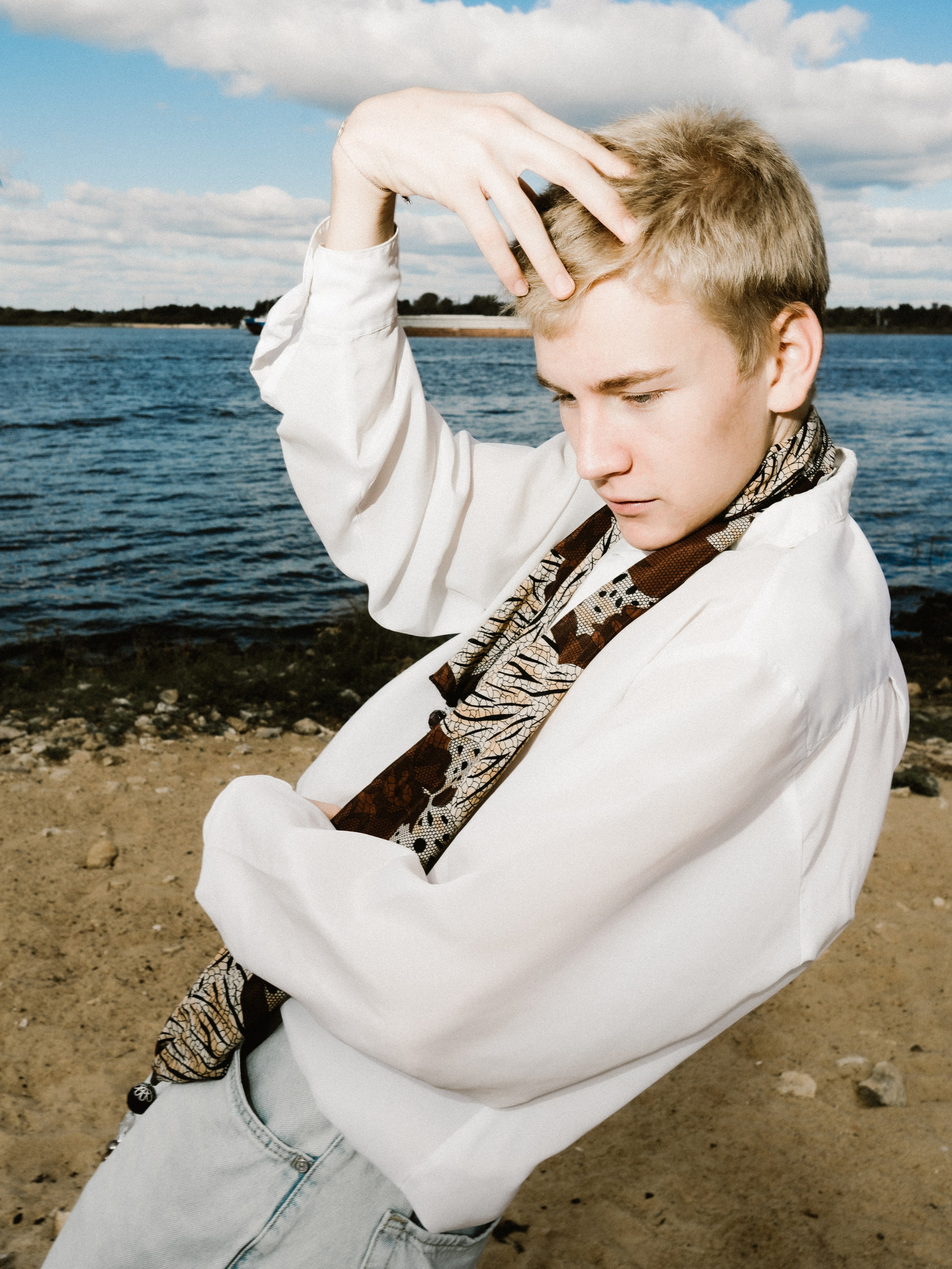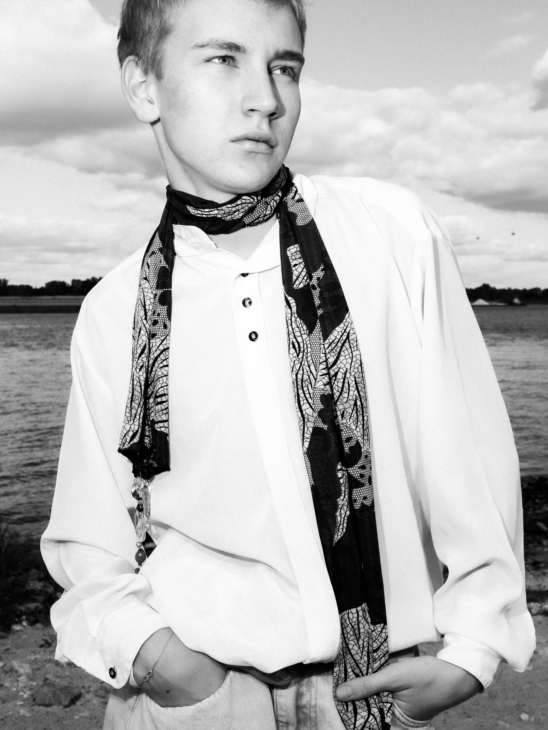 Харизматичный Михаил в офисном образе на берегу Волги