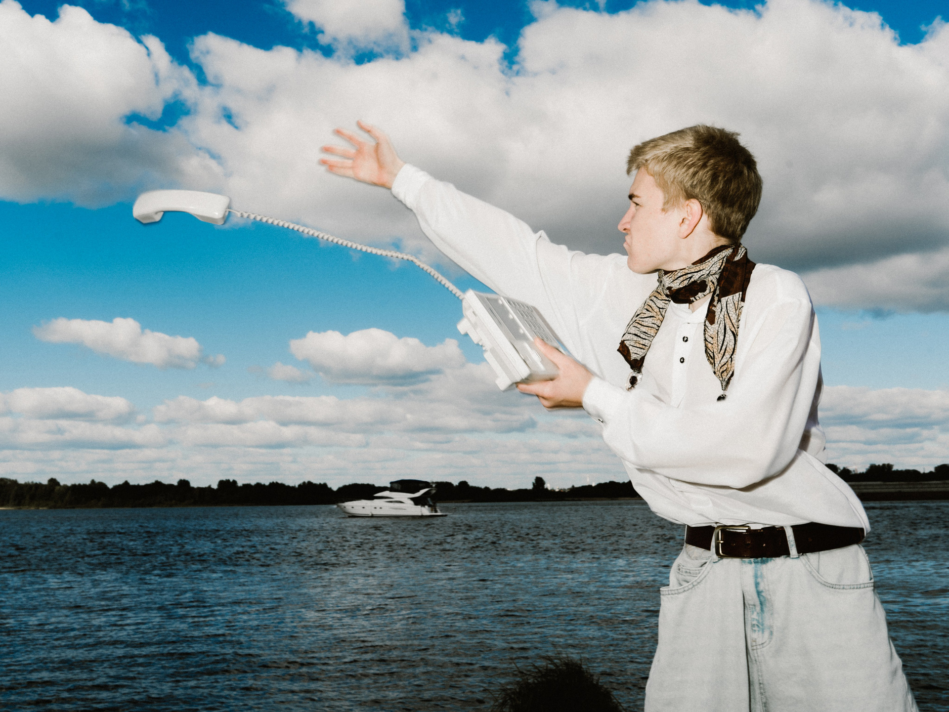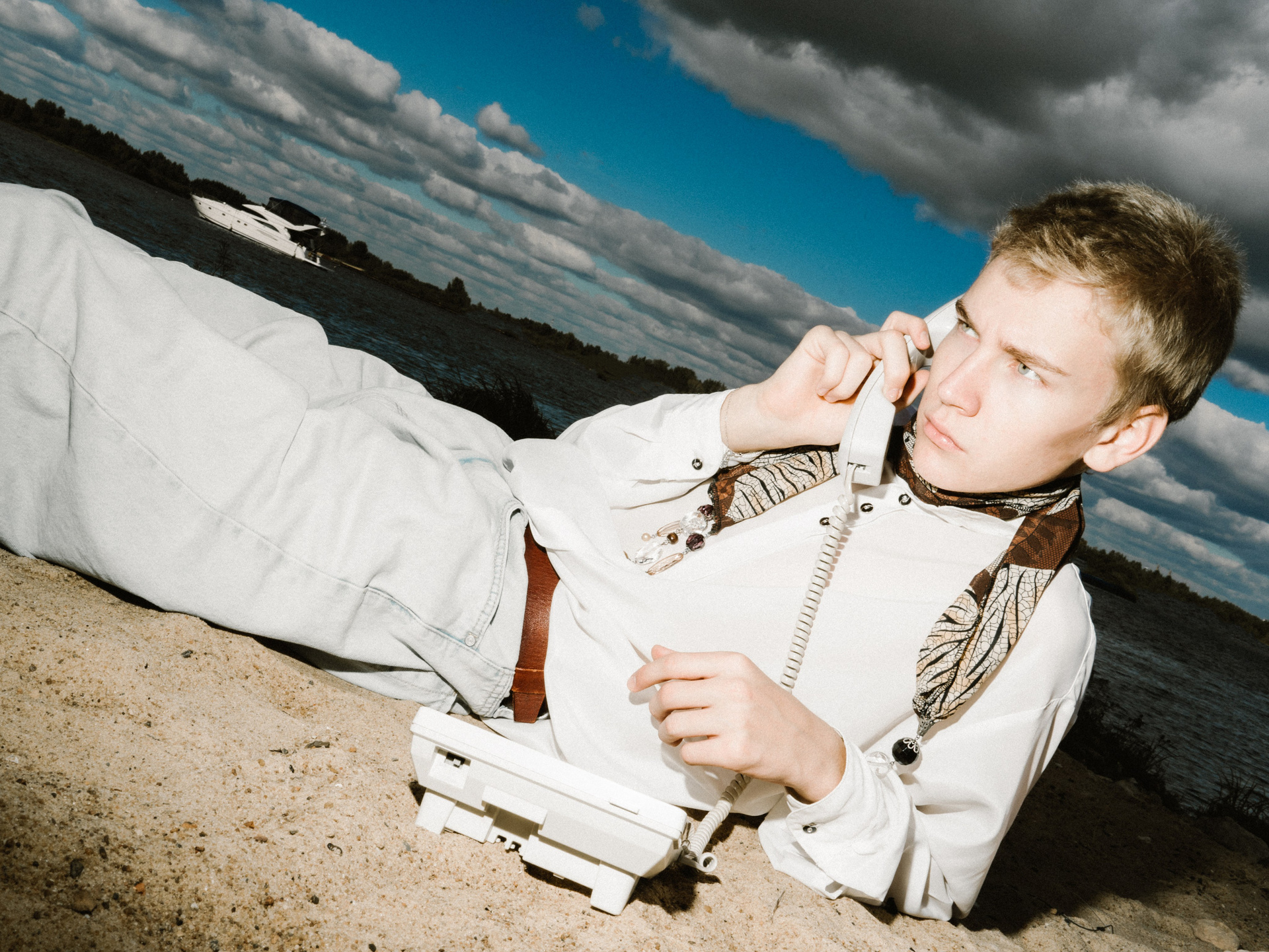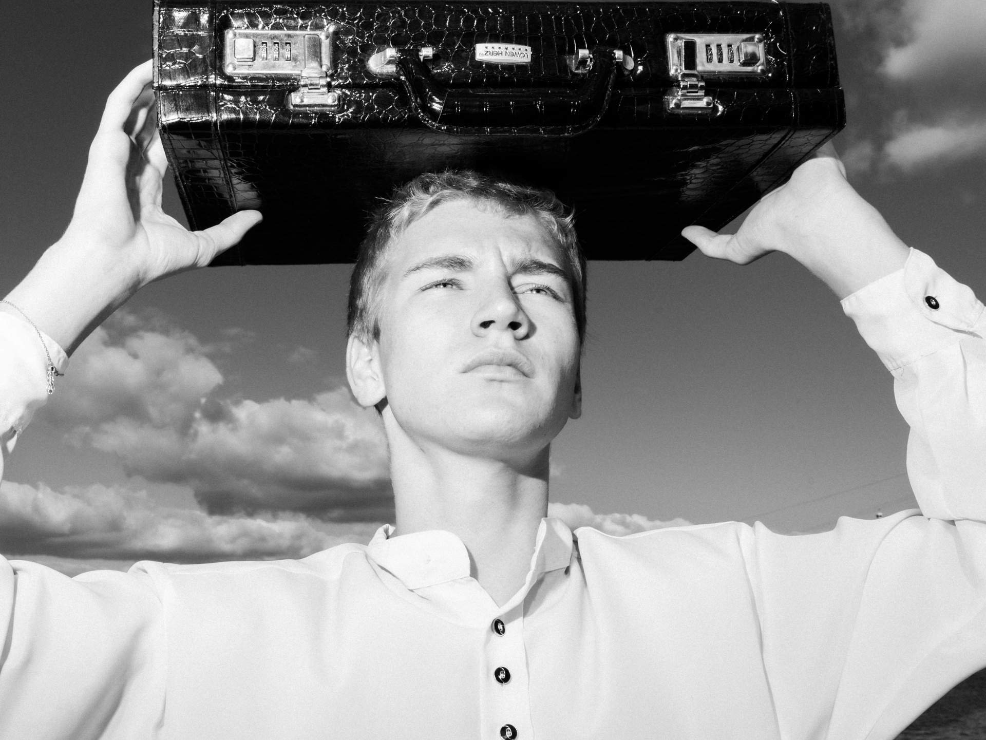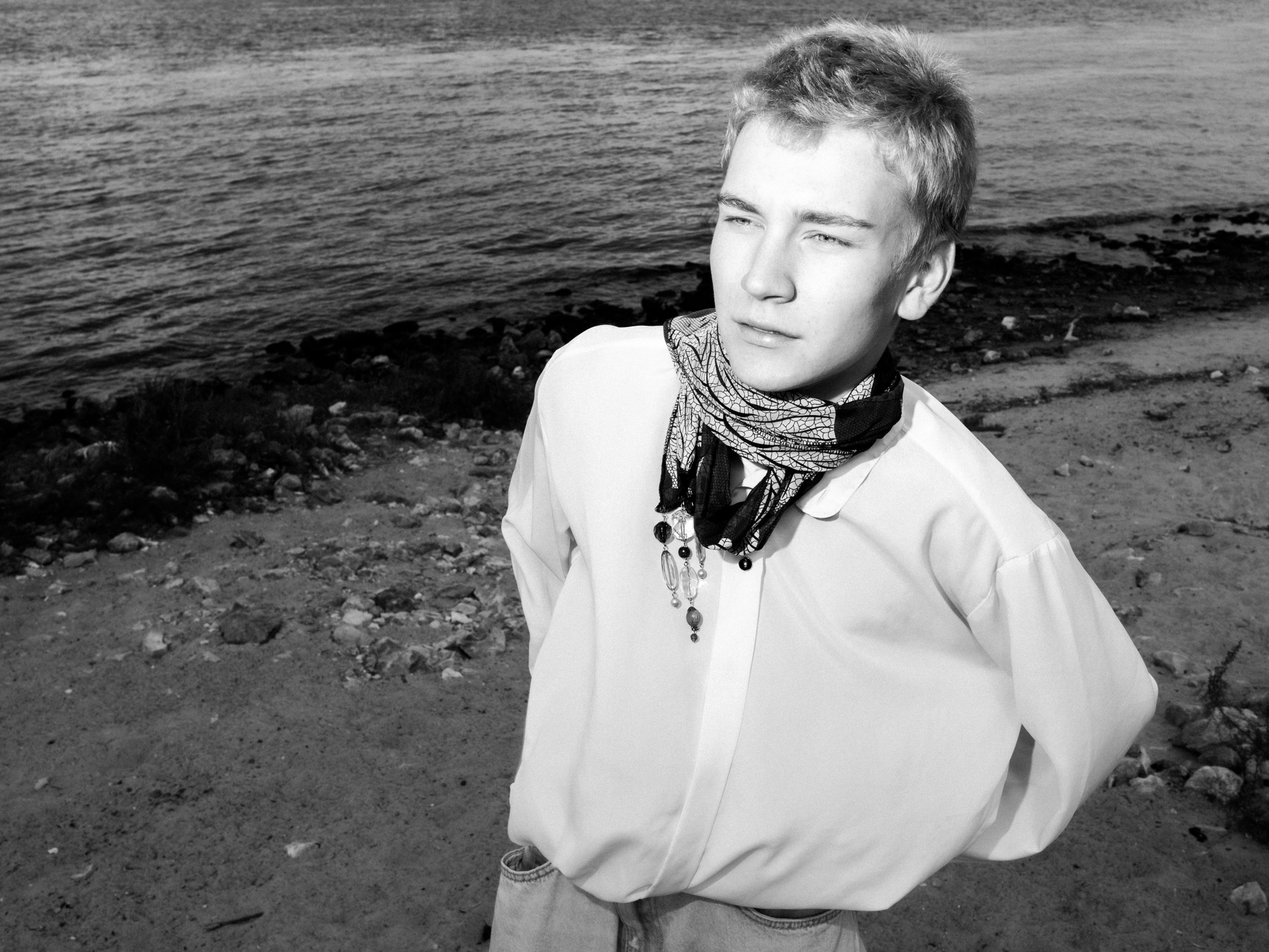Харизматичный Михаил в офисном образе на берегу Волги
